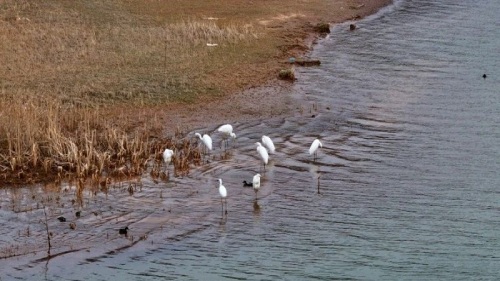 当下时节,在黄河岸畔的积石山县石塬镇三二家村,成群结队的水鸟翩翩起舞,其中既有野鸭、鸳鸯等,还有国家二级保护动物白鹭和苍鹭。
