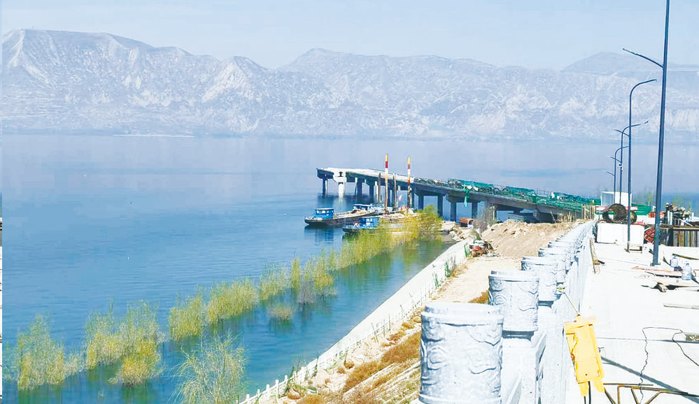 记者在河滩镇祁杨村刘家峡水库岸边看到,一座现代化的水上客运码头——东乡码头正在拔地而起。