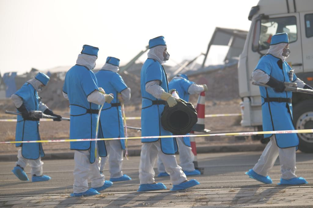 本次演习坚持立足实战、真演真练、务实高效的原则,参演单位涵盖省、市、区三级辐射应急组织和重点监管企业,全面展现了甘肃省面对复杂辐射事故背景下的综合应对处置能力。一是场景联动,演习要素综合全面。演习模拟极端自然灾害条件下两类辐射事故叠加场景,除设置生态环境、公安、卫健部门常规演习科目外,另增加消防部门源库加固救援、气象和地震监测应对等非辐射应急动作,达到了检验预案、磨合机制、最大限度锻炼队伍的演习目的。二是政企协同,应急响应迅速有效。演习梯次启动企业、区、市、省四级辐射事故应急响应程序,各级政府、各部门应急力量分工明确、响应及时、处置科学,企业深度参与先期处置、现场警戒、放射源和放射性废物收贮等工作流程,体现了多级多方联动、组织协同高效的应急响应水平和处置能力,为进一步理顺应急接口、优化响应流程进而推动辐射安全责任落实提供了有效的实践经验。三是科技助力,智能设备协同高效。演习充分运用高科技应急设备,启动多套巡测机器狗、无人机,通过现场实时画面传输、监测数据和热力图展示等途径,强化智能设备与人力协同作战,进一步缩短响应时间、提升处置安全性,为指挥部科学、迅速决策提供了有力支撑。