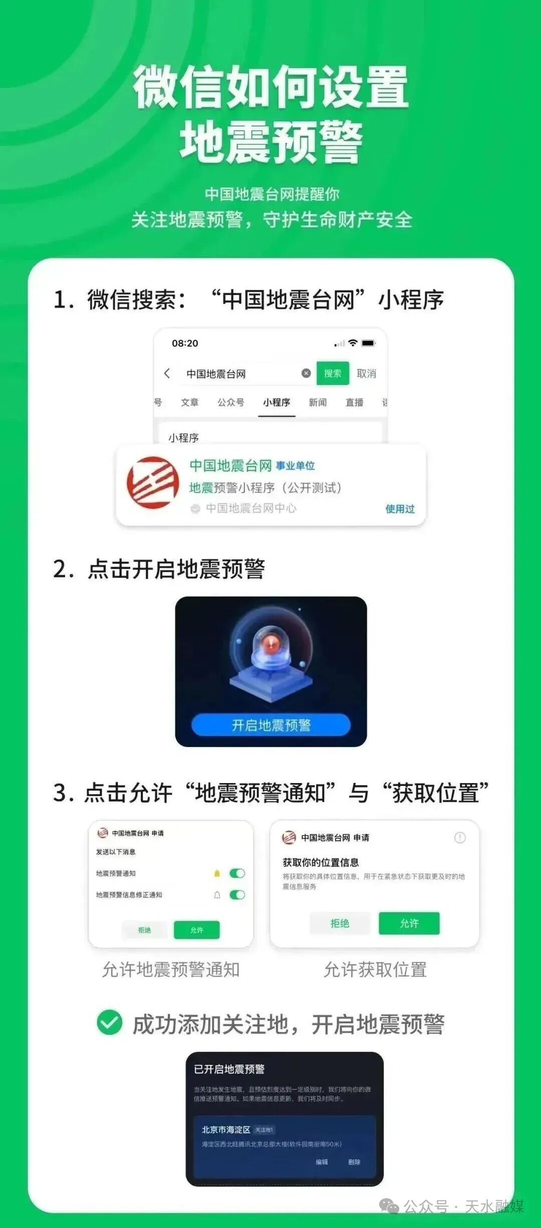 此外,微信也可以设置地震预警,方法如下↓↓↓