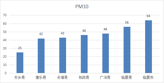 1月1日-10月31日,临夏市环境空气中的PM10浓度均值为58ug/m3;PM2.5浓度均值为28ug/m3,按《环境空气质量标准》(GB3095-2012)及其修改单评价,可吸入颗粒物、细颗粒物均达到国家年二级标准要求;优良天数为268天,占总监测天数的92.1%。