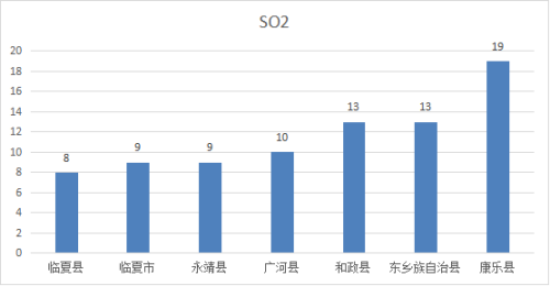 (2)临夏县 PM10浓度均值为85ug/m3,与去年同期下降10.5%;PM2.5浓度均值为40ug/m3,与去年同期相持平;SO2浓度均值为8ug/m3,与去年同期下降20.0%;NO2浓度均值为10ug/m3,与去年同期相比下降33.3%;CO浓度均值为1.3mg/m3,与去年同期下降13.3%;O3浓度均值为114ug/m3,与去年同期相比下降3.4%;优良率平均为64.3%,与去年同期下降35.7%。