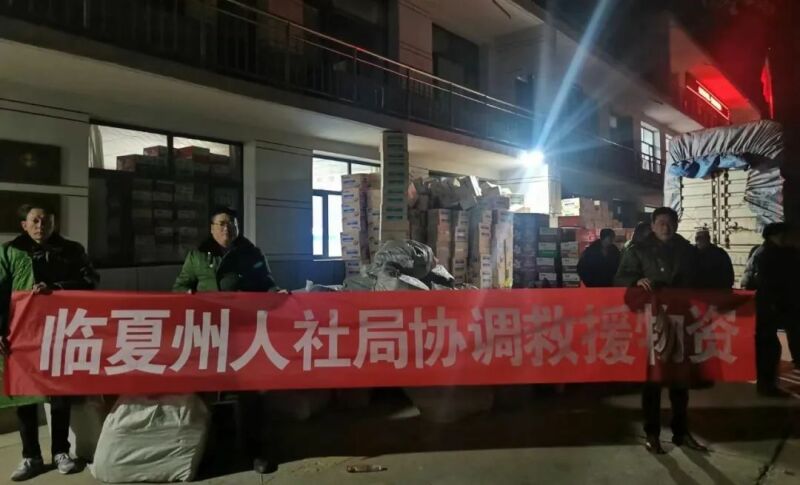 一方有难,八方支援,凝聚成共克时艰的强大力量。地震发生后,特别是实地走访受灾群众后,州人社局主要负责人不间断对接联系公益组织、爱心企业,争取物资支持,许多企业主动联系人社部门询问救灾需求,壹基金等公益组织及时为大河家镇捐赠紧缺御寒物资帐篷30顶、棉被2000条、被套2000条、炉具150套、煤炭10吨及牛肉面600碗;州内企业甘肃宏远人力资源开发有限公司为灾区捐赠清油50桶、面粉100袋、方便面100件、牛奶200件、锅盔1000个;东乡众城培训学校捐赠应急标配棉帐篷20顶。积石山县人社局积极协调和政县人社局、中科长源教育科技集团,筹集棉衣、棉被等御寒衣物1000余件,电褥子100件,食品饮品6900余件,蔬菜2000余斤,这些物资已全部运抵大河家镇、柳沟乡及受灾村户。同时在柳沟乡斜套村设置牛肉面现场制作点,为安置点群众送去热气腾腾、暖心暖胃的牛肉面。