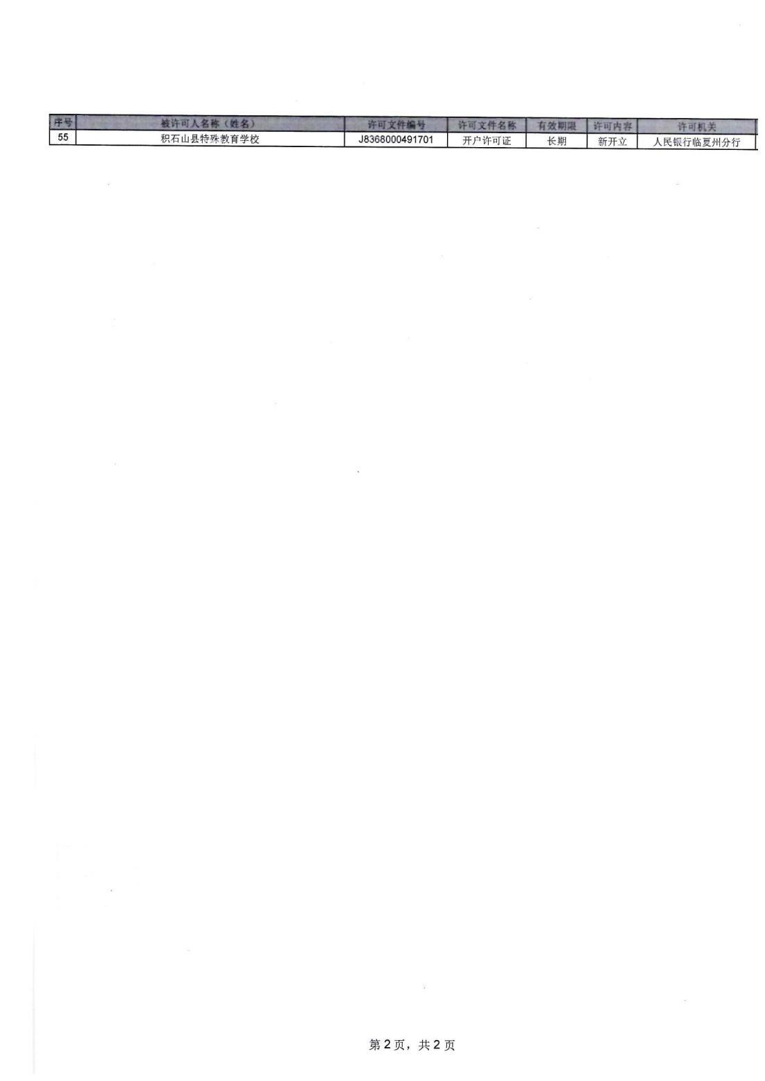 人民银行临夏州分行行政许可信息公示表(2024.10.21-2024.10.25)
