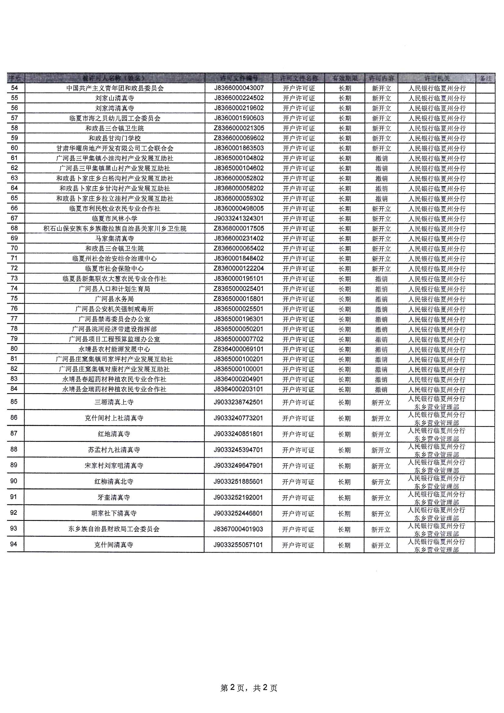 人民银行临夏州分行行政许可信息公示表(2025年12月15日-2025年12月19日)