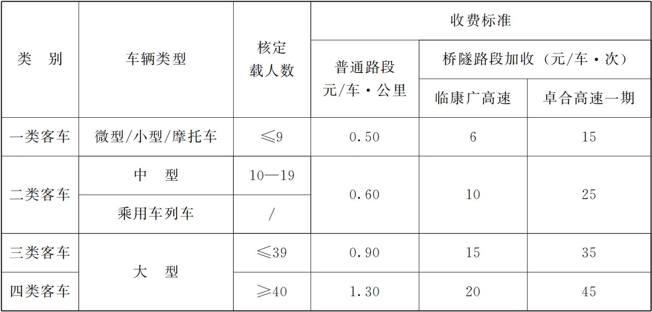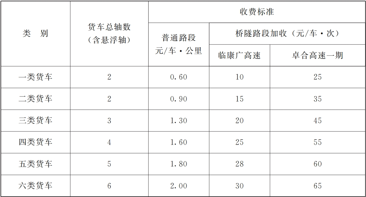 临康广高速、卓合高速一期纳入全省高速公路联网收费。具体如下: