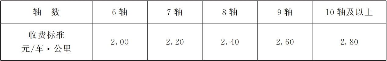 注:通行费计费规则按交通运输部《收费公路联网收费运营和服务规则(2020)》《收费公路联网收费运营和服务规程(2020)》以及相关规定执行。6轴及以上货车桥隧加收标准按6轴货车标准收取,6轴及以上专项作业车车辆通行费按6轴货车收费标准收取。