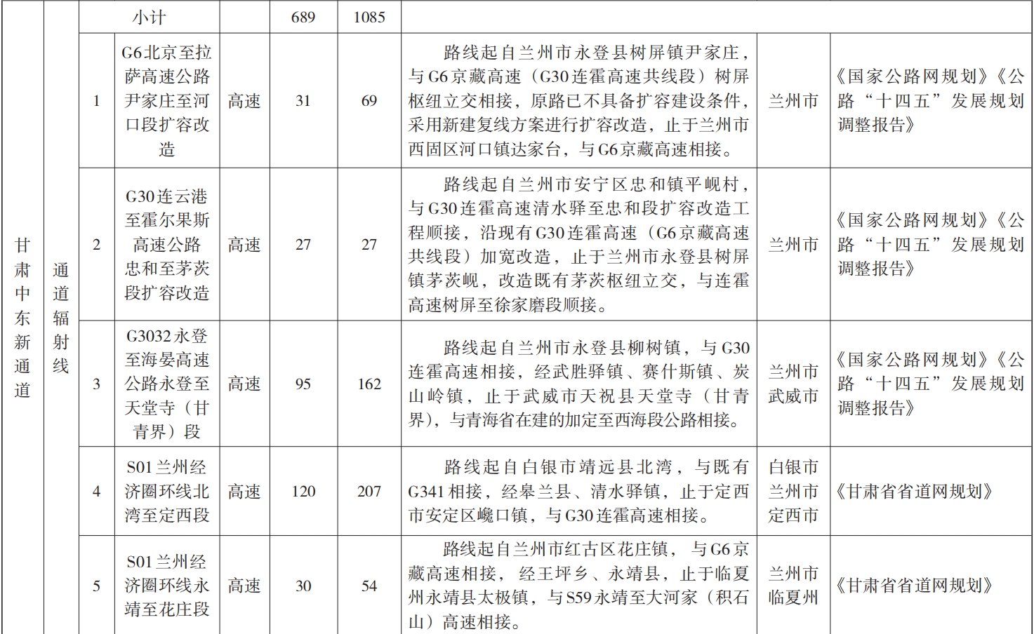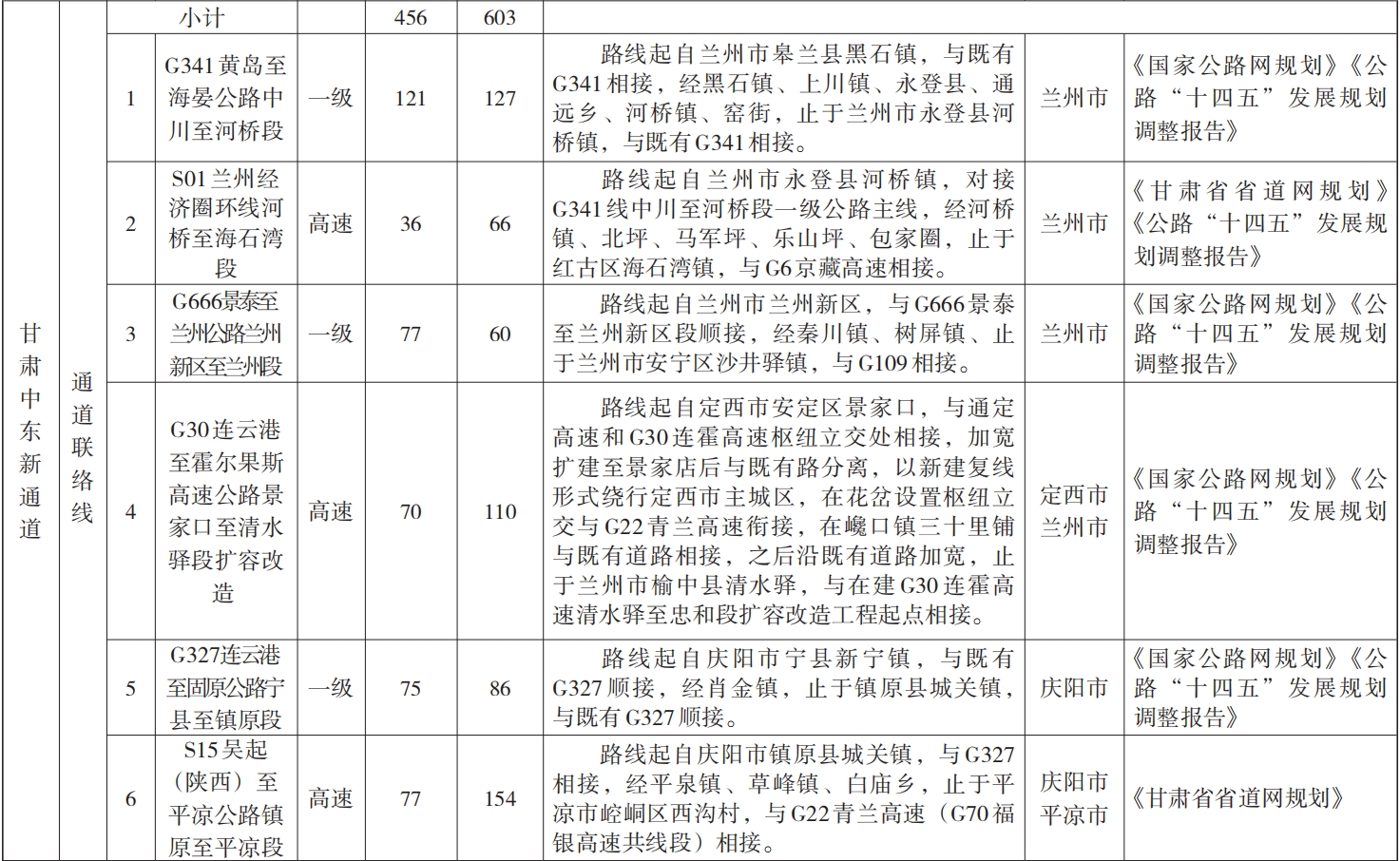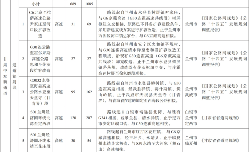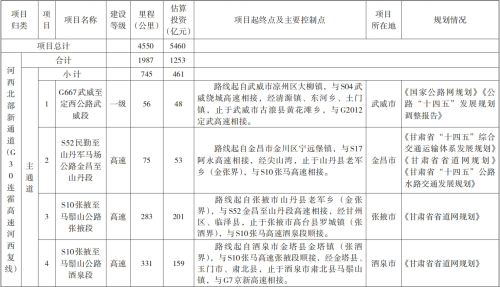 附件:1.甘肃省“三大高速公路新通道”项目表
