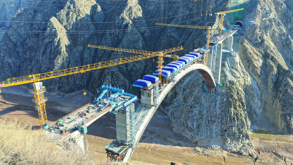 眼下,兰合铁路洮河大桥拱上立柱施工已全部完成,正在进行拱上现浇连续梁施工,为兰合铁路按时通车奠定坚实基础。洮河大桥位于永靖县与东乡县洮河峡谷区,是兰合铁路全线重难点工程,桥梁全长430.5米,主桥为跨径220米的上承式劲性骨架钢筋混凝土拱桥。 通讯员 史有东 摄