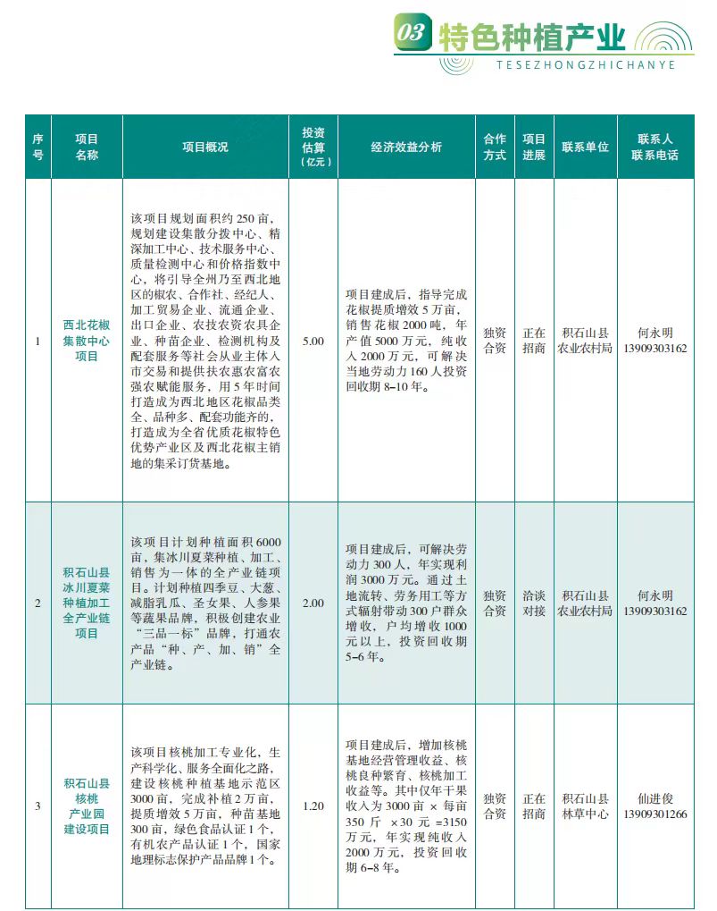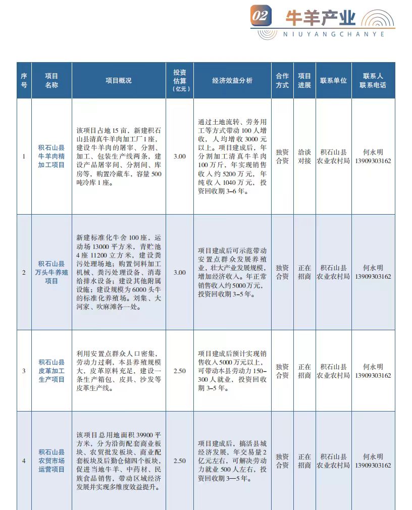 临夏州投资合作信息发布【系列二十二】——积石山县招商引资投资机会清单
