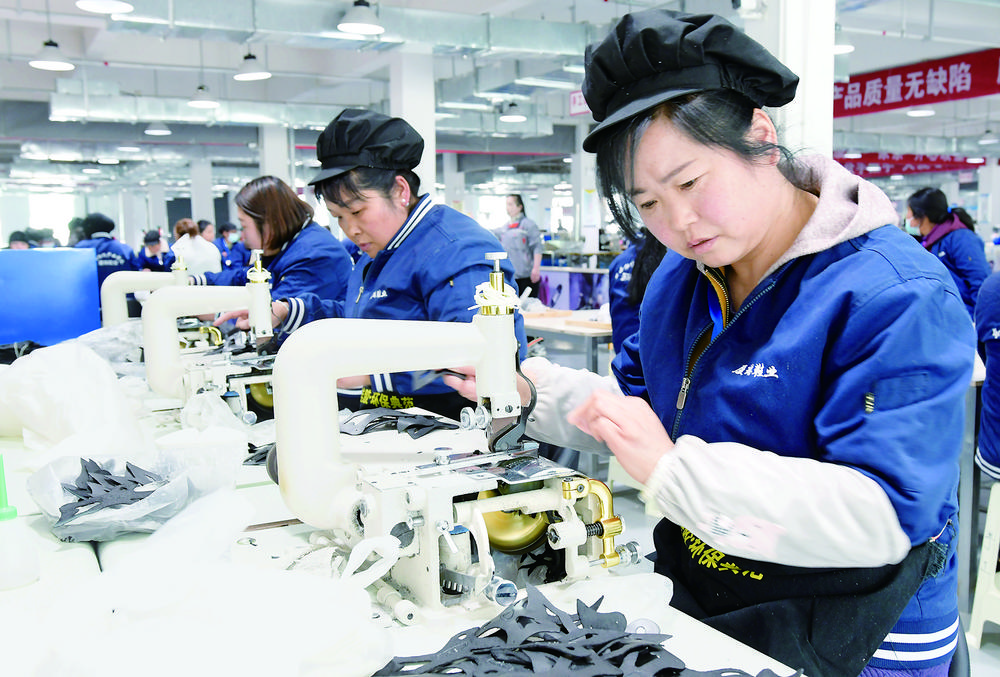 临夏厦琳鞋业有限公司工人正在制鞋