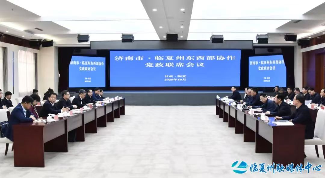 李海默对济南市党政代表团一行表示欢迎,对济南市给予临夏的倾力支持和无私援助表示感谢。他说,济南市帮扶临夏州以来,全面落实鲁甘两省部署要求,党委政府高度重视,县区部门全力以赴,社会各界广泛联动,助力临夏乡村振兴迈出坚实步伐、产业协作结出丰硕成果、就业增收惠及千家万户、人才交流赋能行业发展、灾后重建取得重大胜利。临夏州将抢抓协作之机、用好帮扶之力,持续加强特色产业培育,扩大消费帮扶成果,深化劳务对接协作,推进文旅融合发展,推动两地协作再结硕果、再谱新篇。