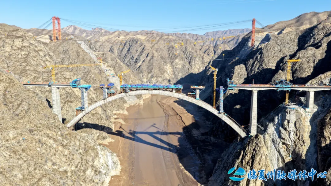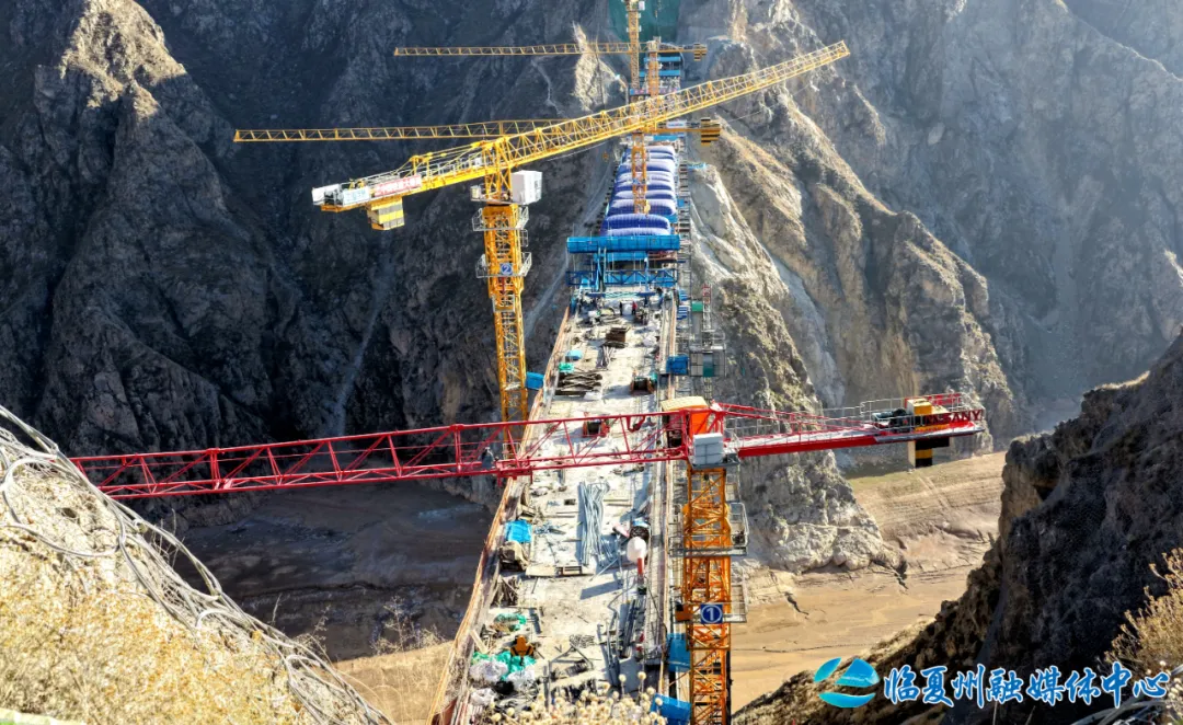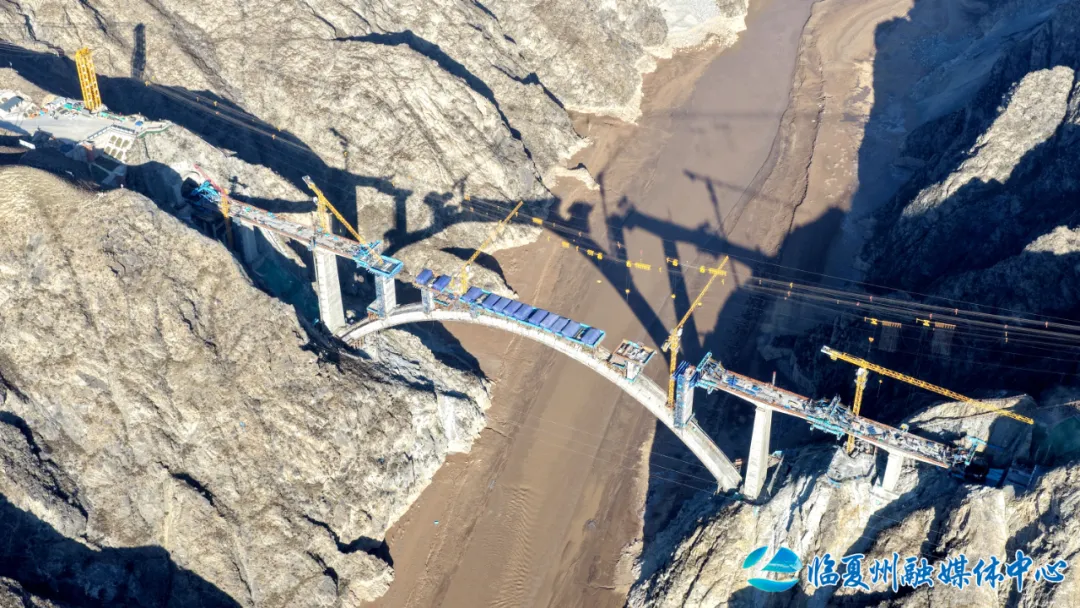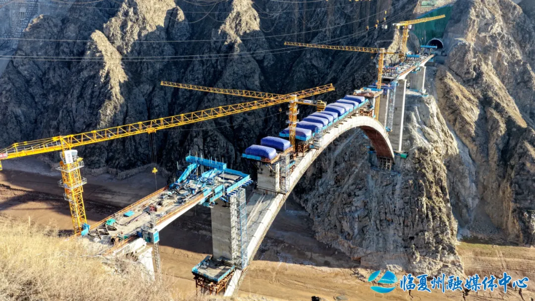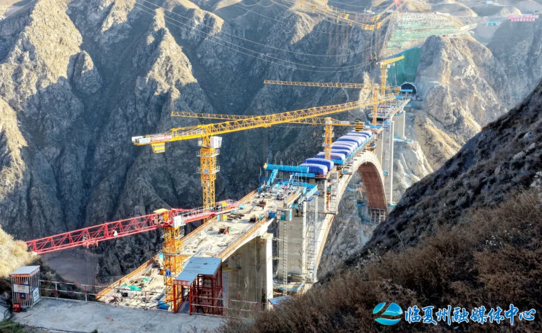 洮河大桥位于临夏州永靖县与东乡县洮河峡谷区,是兰合铁路全线重难点工程,桥梁全长430.5米,主桥为跨径220米的上承式劲性骨架钢筋混凝土拱桥。