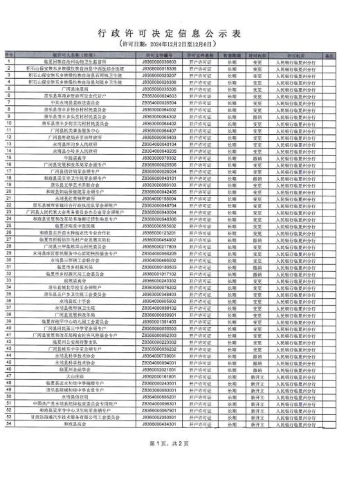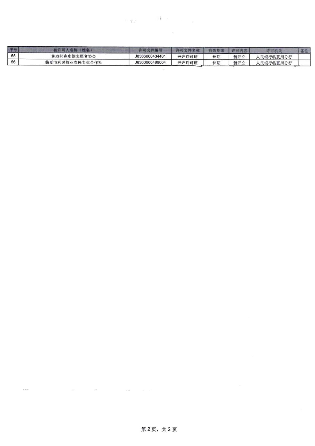 人民银行临夏州分行行政许可信息公示表(2024.12.2-2024.12.6)