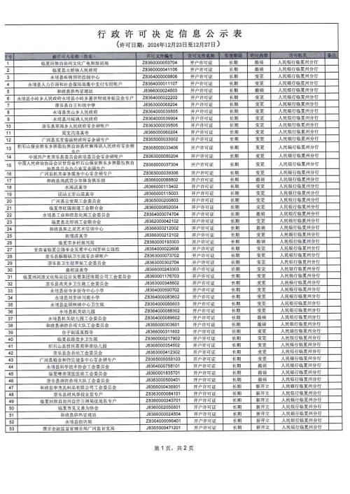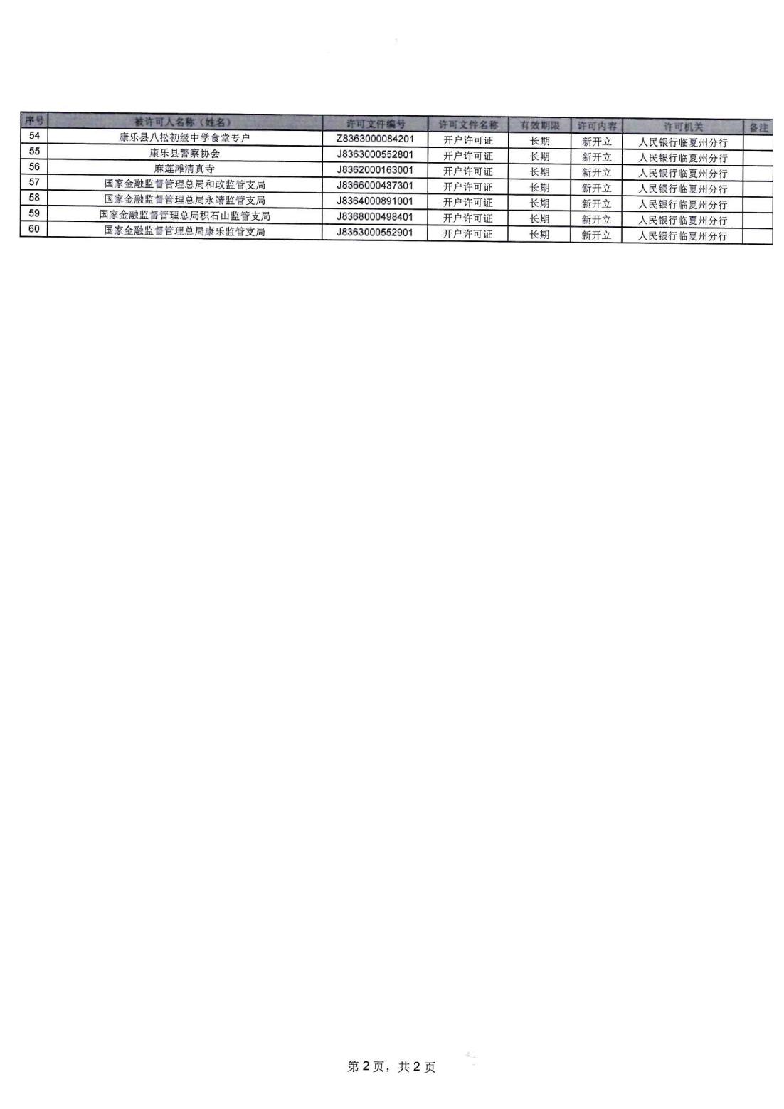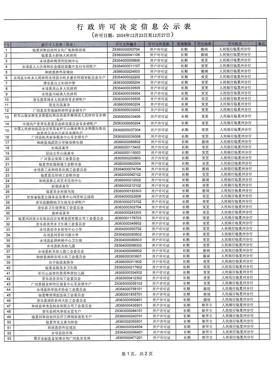 人民银行临夏州分行行政许可信息公示表(2024.12.23-2024.12.27)