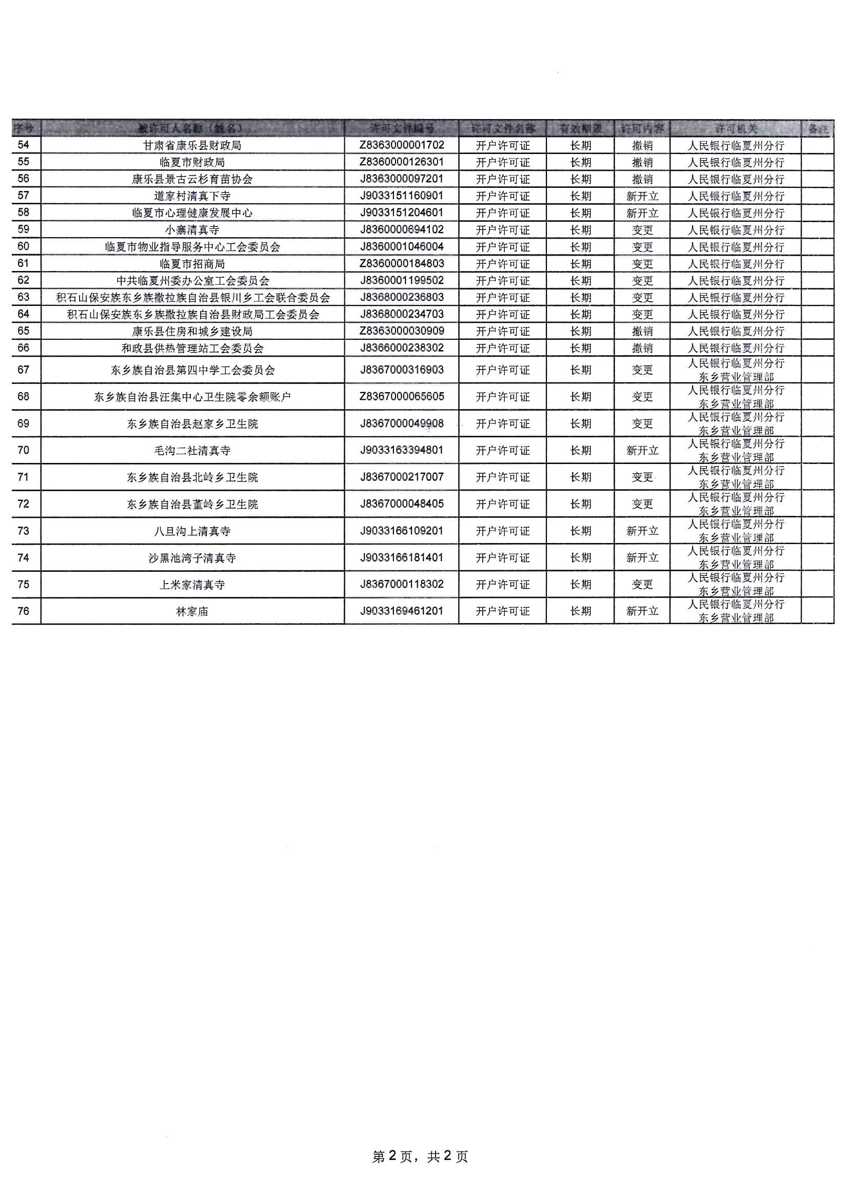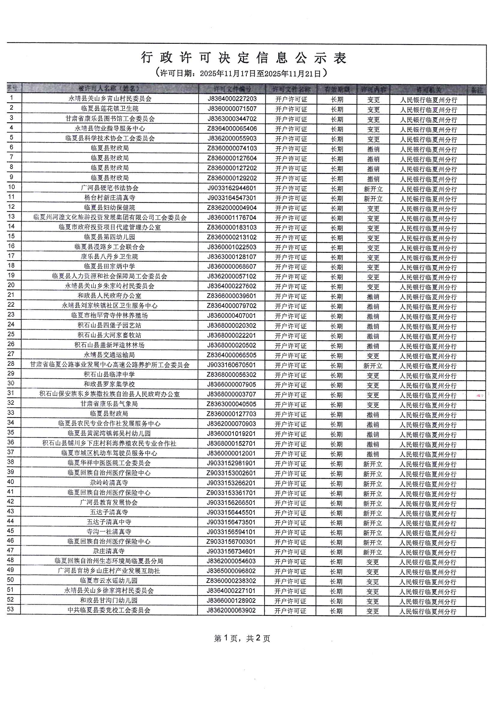 人民银行临夏州分行行政许可信息公示表(2025年11月17日-2025年11月21日)