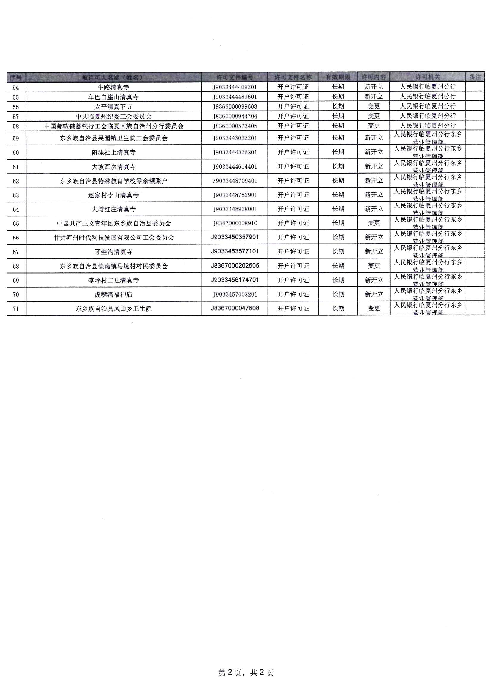 人民银行临夏州分行行政许可信息公示表(2026年3月2日-2026年3月6日)