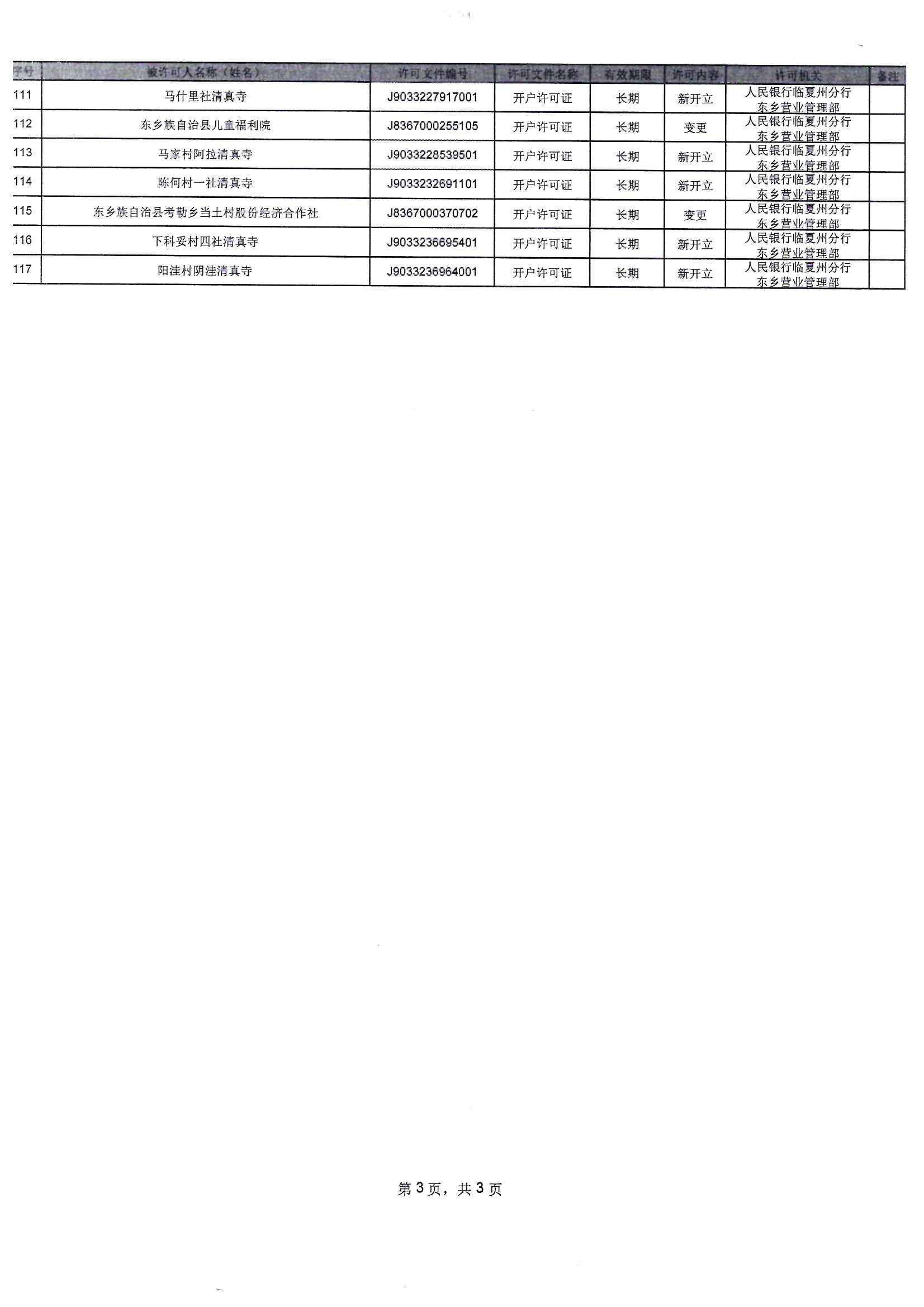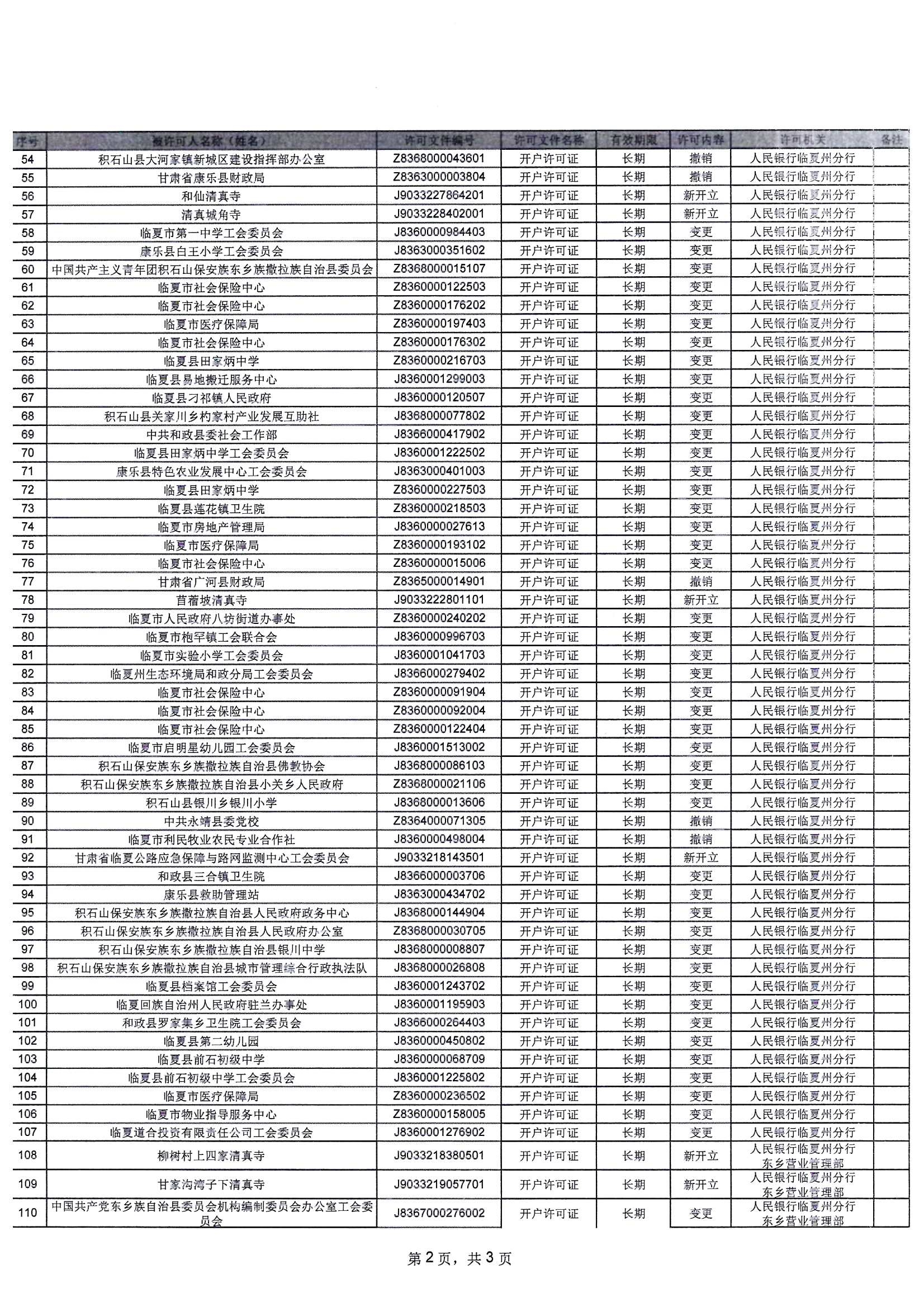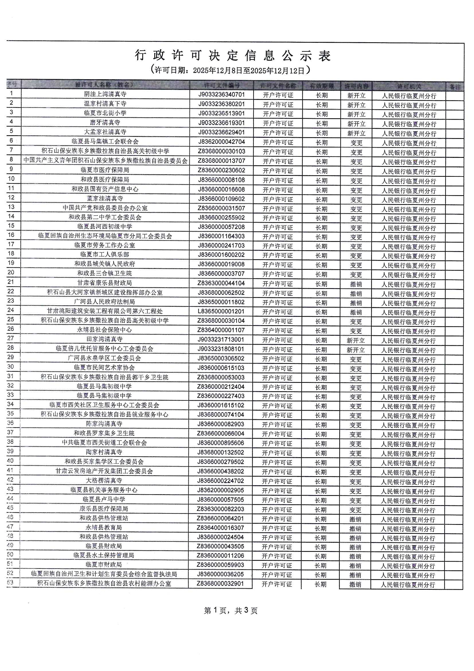 人民银行临夏州分行行政许可信息公示表(2025年12月8日-2025年12月12日)