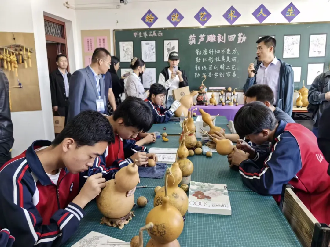 随后,在我校教师马晓霞、王娟妮的引导讲解下,来访嘉宾先后参观了学生宿舍、特色课程教室,现场观摩葫芦雕刻、烙画、砖雕、刺绣、剪纸、手工、缝纫、烹饪等特色教学活动。