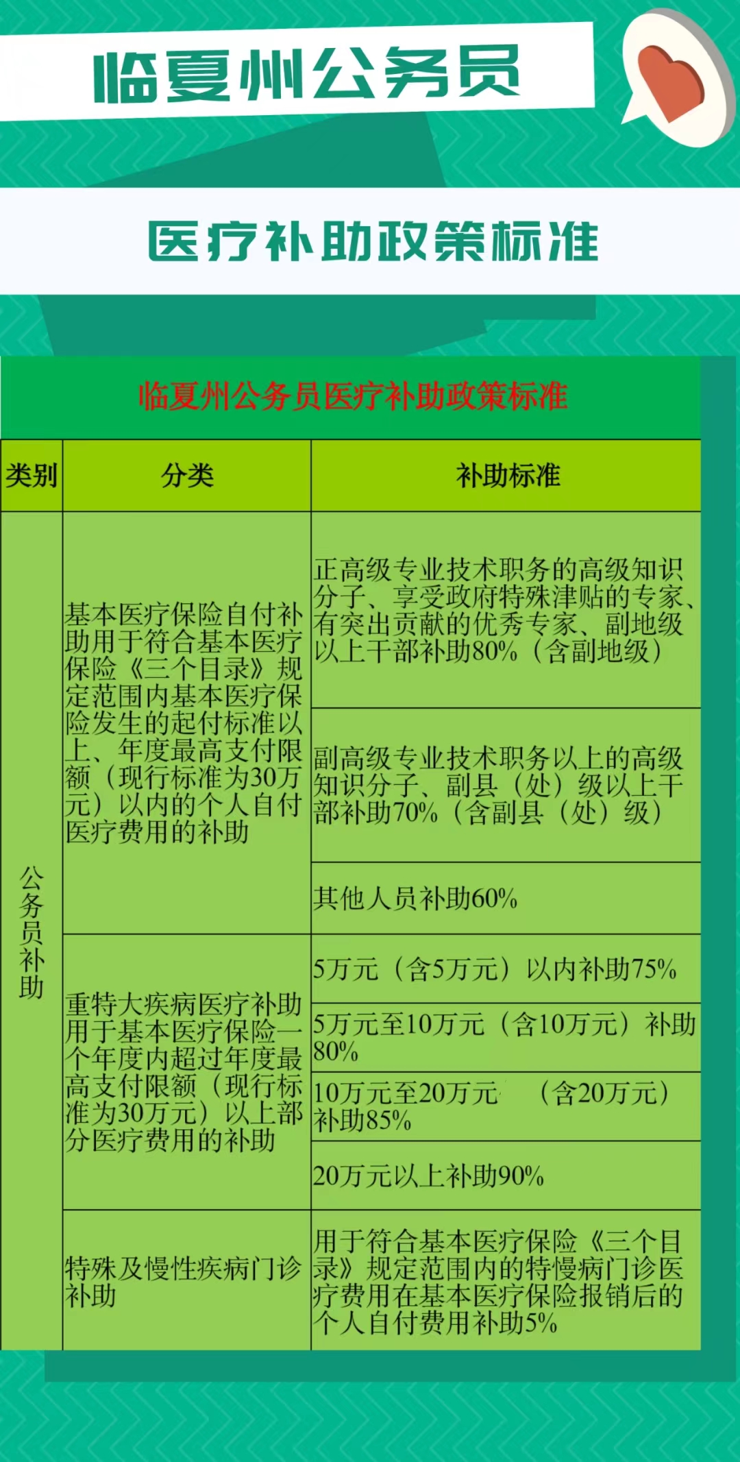 〔图表图解〕公务员医疗补助政策标准
